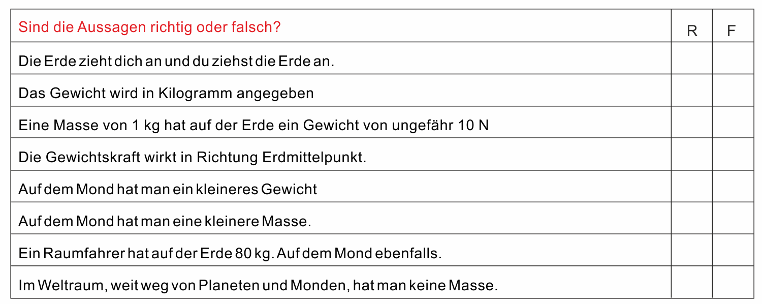 Deine Masse m = ______ kg => Gewicht = ______ N