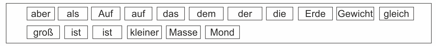 Die Worte sind durcheinander geraten. Füge sie wieder richtig zusammen. Finde den Lösungssatz!