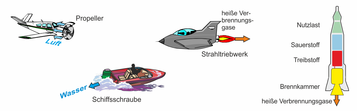 Wir sehen: es wirken immer zwei Kräfte. Man spricht von der Kraft und der Gegen- oder Reaktionskraft. Beide Kräfte sind gleich groß, wirken aber in entgegengesetzte Richtungen.