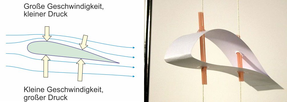 Auftriebshilfen und Bremsklappen: Beim Starten und Landen ist die Geschwindigkeit eines Flugzeugs am kleinsten. Damit der Auftrieb auch hier ausreichend groß ist, werden an den Tragflächen Klappen ausgefahren, die den Auftrieb erhöhen (Auftriebshilfen). Nach der Landung werden weitere Klappen an der Tragflächenoberseite aufgeklappt (Bremsklappen). Sie vergrößern den Luftwiderstand der Tragflächen und helfen so, das Flugzeug abzubremsen.