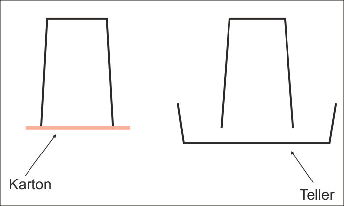 Vervollständige die Skizze und zeichne ein, wo der Luftdruck wirkt. Verwende kurze Pfeile für einen kleinen Luftdruck und lange Pfeile für einen großen Luftdruck.